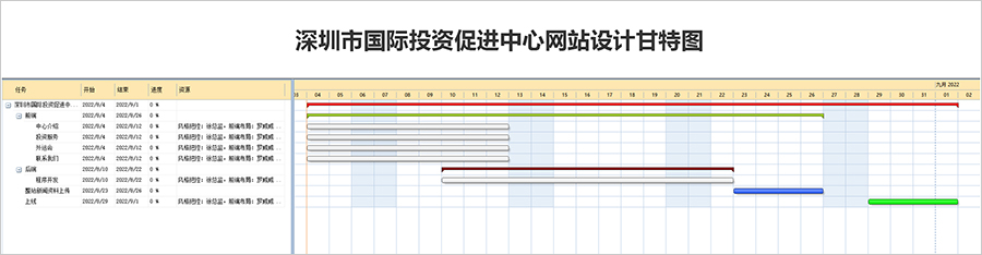 黑眼睛廣告為投資促進(jìn)中心官網(wǎng)改版設(shè)計(jì)繪制的甘特圖