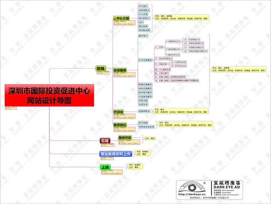 這次官網(wǎng)改版,深圳市國(guó)際投資促進(jìn)中心的黃總對(duì)黑眼睛廣告給予了很高的期望,黑眼睛廣告很快就完成了整個(gè)網(wǎng)站《項(xiàng)目完成甘特圖》和《網(wǎng)站建設(shè)拓?fù)鋱D》并抽調(diào)設(shè)計(jì)能力最強(qiáng)的網(wǎng)站前端設(shè)計(jì)師、架構(gòu)師、程序開(kāi)發(fā)人員,組成項(xiàng)目組開(kāi)始項(xiàng)目設(shè)計(jì)。